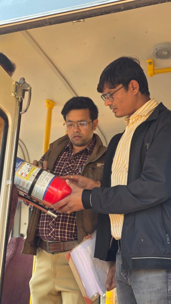 यातायात प्रभारी कबीर धाम अजयकांत तिवारी एवं टीम ने चालक एवं परिचालकों को यातायात नियमों के पालन तथा सुरक्षित वाहन संचालन संबंधी निर्देश दिए। कबीरधाम स्वास्थ्य विभाग से डॉ. धीरेंद्र शर्मा, नेत्र सहायक अधिकारी के नेतृत्व में सभी चालकों का स्वास्थ्य एवं नेत्र परीक्षण किया। सड़क सुरक्षा की दृष्टि से चालकों का फिट होना आवश्यक है। नगर सेना अधिकारी कबीरधाम श्री श्रीवास्तव एवं टीम ने आगजनी अथवा दुर्घटना की स्थिति में आपातकालीन निकासी, बस में उपलब्ध अग्निशमन यंत्र के उपयोग तथा दुर्घटना की स्थिति में तुरंत कार्रवाई के संबंध में प्रशिक्षण दिया। शिविर के माध्यम से चालकों को सड़क सुरक्षा, स्वास्थ्य एवं आपातकालीन प्रबंधन की विस्तृत जानकारी प्रदान की गई।