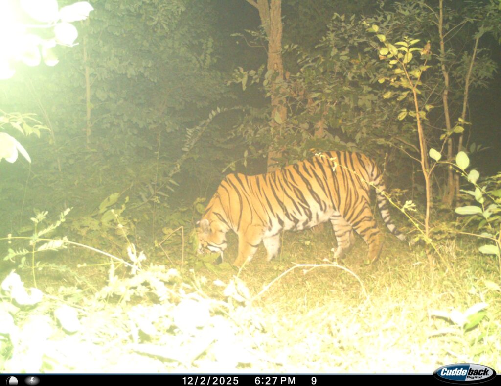 बाघ के लोकेशन के लिए लगे तीन संवेदनशील जगह पर विभाग द्वारा लगाए ट्रैक कैमरे मे नवागढ़ और आसपास के जंगल मे बाघ की मौजूदगी की पुष्टि हुई है। बाघ के ताड़ोबा रिजर्व एरिया से आने की आशंका से हम वहां भी फोटो भेजकर तस्दीक कर रहे है l हमने दक्षिण मानपुर विभाग की टीम गठित कर दी है जो बाघ के मूवमेंट
