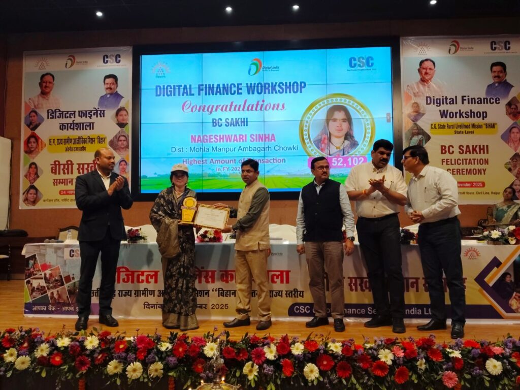 यह सम्मान उन्हें गत दिवस को न्यू सर्किट हाउस, रायपुर में आयोजित राज्य स्तरीय डिजिटल फाइनेंस कार्यशाला एवं सम्मान समारोह में प्रदान किया गया, जिसमें प्रदेशभर की उत्कृष्ट बीसी सखियों को सम्मानित किया गया।