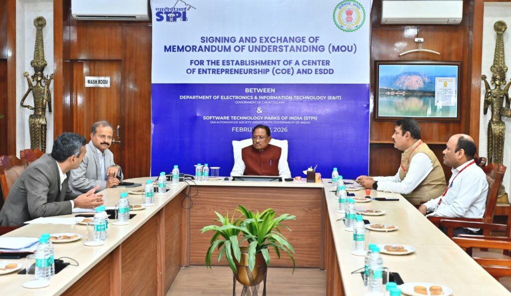 रायपुर, 10 फरवरी 2026 । छत्तीसगढ़ प्राकृतिक संसाधनों से समृद्ध राज्य है। हमारा लक्ष्य है कि छत्तीसगढ़ ज्ञान, तकनीक और नवाचार के क्षेत्र में भी देश में अपनी विशिष्ट पहचान बनाए। छत्तीसगढ़ सरकार राज्य को ज्ञान, तकनीक और नवाचार के क्षेत्र में अग्रणी बनाने की दिशा में निरंतर आगे बढ़ रही है।आधुनिक अधोसंरचना, प्रभावी ई-गवर्नेंस प्रणाली और निवेश-अनुकूल नीतियों के चलते छत्तीसगढ़ आज आईटी, आईटीईएस एवं इमरजिंग टेक्नोलॉजी आधारित उद्योगों के लिए एक भरोसेमंद और आकर्षक गंतव्य के रूप में उभर रहा है। मुख्यमंत्री श्री विष्णु देव साय ने आज अपने निवास कार्यालय में इलेक्ट्रॉनिक्स एवं सूचना प्रौद्योगिकी विभाग, छत्तीसगढ़ शासन एवं सॉफ्टवेयर टेक्नोलॉजी पार्क्स ऑफ इंडिया (एसटीपीआई) के मध्य हुए महत्वपूर्ण समझौता ज्ञापन (एमओयू) उपरांत कार्यक्रम को संबोधित करते हुए यह बात कही।