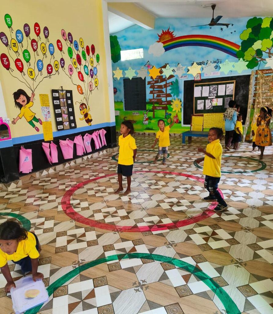 दीवारों पर स्थानीय संस्कृति, गणितीय अवधारणाएँ, भाषा चार्ट, फर्श पर रंग-आकार और सीढ़ियों पर गिनतीकृहर संरचना बच्चों में जिज्ञासा, स्मरण शक्ति और सीखने की रुचि बढ़ा रही हैशिक्षा के साथ रोजगार का सृजनइन आंगनबाड़ी भवनों का निर्माण मनरेगा के अंतर्गत होने से एक ओर गुणवत्तापूर्ण अधोसंरचना का विकास हुआ है, वहीं दूसरी ओर ग्रामीण श्रमिकों को स्थायी रोजगार मिला है। मजदूरी से ग्रामीण परिवारों की आय में वृद्धि हुई है और पलायन पर प्रभावी नियंत्रण संभव हुआ है। इस प्रकार आंगनबाड़ी निर्माण केवल बाल विकास का माध्यम नहीं, बल्कि ग्रामीण आजीविका सशक्तिकरण का भी सशक्त मॉडल बन गया है।खेल-खेल में शिक्षा से खिलखिलाता बचपनमहासमुंद के शहरी सक्षम केंद्रों से लेकर नारायणपुर के सुदूर वनांचल के ग्राम कुंदला तक, आंगनबाड़ी केंद्रों में आया यह बदलाव स्पष्ट दिखाई देता है। रंग-बिरंगी दीवारें, शैक्षणिक चार्ट, कविताएँ, खेल सामग्री और बच्चों की खिलखिलाती हँसी ने आंगनबाड़ी को आधुनिक प्ले-स्कूल जैसा वातावरण प्रदान किया है। बच्चे भाषा, गणित और व्यवहारिक ज्ञान को आनंदपूर्वक सीख रहे हैं और स्वयं उत्साह के साथ केंद्र आ रहे हैं।पोषण, स्वास्थ्य और सामाजिक चेतना का केंद्रआंगनबाड़ी केंद्र आज बच्चों तक सीमित न रहकर गर्भवती महिलाओं, धात्री माताओं और किशोरी बालिकाओं के लिए भी पोषण, टीकाकरण, स्वास्थ्य परीक्षण और परामर्श का प्रमुख केंद्र बन गए हैं।दीवारों पर अंकित संदेश “जितनी अच्छी वजन की रेखा, उतना स्वस्थ बच्चा” और“लड़का-लड़की एक समान”आंगनबाड़ी को सामाजिक परिवर्तन का प्रभावी मंच भी बना रहे हैं।कल्याणकारी योजनाओं का प्रभावी क्रियान्वयनप्रधानमंत्री मातृत्व वंदन योजना, मुख्यमंत्री बाल संदर्भ योजना, सुकन्या समृद्धि योजना, नोनी सुरक्षा योजना और महतारी वंदन योजना जैसी योजनाओं का क्रियान्वयन आंगनबाड़ी केंद्रों के माध्यम से प्रभावी रूप से हो रहा है।