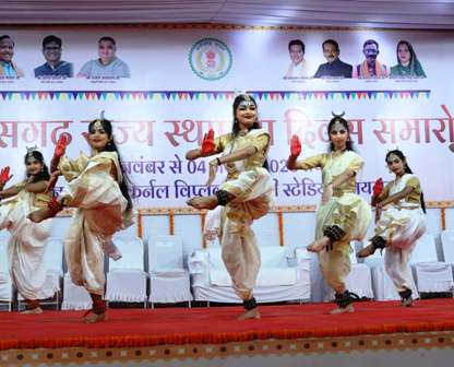 राज्योत्सव समारोह के प्रथम दिन आज शहीद कर्नल विप्लव त्रिपाठी स्टेडियम में स्कूली बच्चों ने शानदार मनमोहक प्रस्तुति दी। जिसमें श्रीमती सोमादास एवं ग्रुप द्वारा गणेश वंदना, डॉ.दीपिका सरकार एवं ग्रुप द्वारा शिव स्त्रोत नृत्य, कुमारी मानवी अग्रवाल द्वारा कथक, कार्मेल कन्या स्कूल के विद्यार्थियों ने मराठी लोकनृत्य सहित अन्य स्कूली बच्चों ने कार्यक्रम की प्रस्तुति दी।